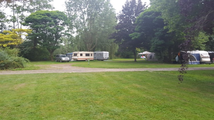 Behalve het vreemde volk (echt: ze blijven staren, zonder goeiendag te zeggen, wat is er mis met ons? We missen Wim en Riet!) is het een fijne camping: rustig (behalve de voorbijrazende treinen) en heel groen. Sanitair is redelijk recent en proper. We gaan douchen, Meneertje Mertens vergeet zijn sleutels en de madame achter hem geeft die met een grauw aan hem, ze reageerde heel “GRAUW” maar achteraf merkte hij dat hij eigenlijk in de vrouwendouches zat, oeps, “we gaan samen douchen” is altijd wat gevaarlijk. Het is heet en drukkend, af en toe regent het voor een halve minuut en soms is er wat gerommel in de verte. We hebben al de helft van onze kilometers richting Gent afgelegd, en we gaan dus tevreden slapen.