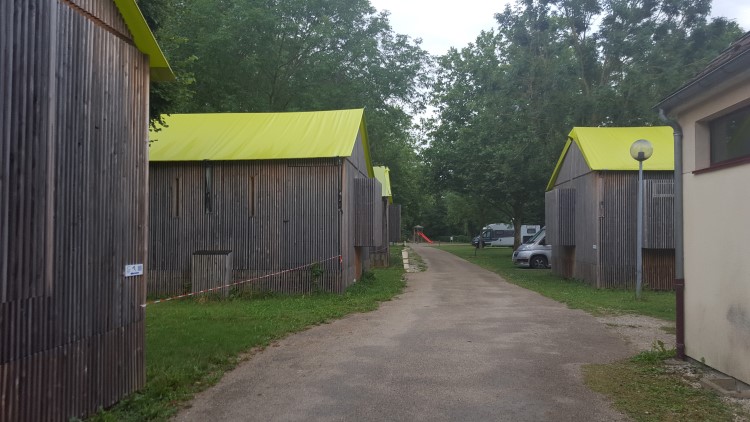 Rond 15u30u stoppen we in Avallon op de parking van een Auchan, en kijken daar naar de koers. We zijn niet de enigen: we stoppen naast een andere camper, en die rijdt weg meteen nadat de koers gedaan is, ha. Wij niet: we gaan nog water en fruit en een slaatje halen in de Auchan, en gaan daarna een hamburger eten. In Avallon en wijde omtrek is geen geschikte camperplaats te bespeuren (allemaal met faciliteiten “vuilnisbak”, ja hè, zeg, of “speeltuin”, tja, maar wij willen onze tanks legen en vullen), dus we rijden nog een eind door. We verleggen ondertussen ons mikpunt naar Reims. Na nog een 40-tal km rijden zijn we het zoeken moe, zien we een bordje van een camping, en besluiten ons geluk te wagen. En dat is een goede beslissing: we kunnen er voor 18 euro een nacht staan op Camping La Cascade in Tonnerre. We mogen zelf een plaatsje zoeken. Ik vind het al snel een camping met vreemd volk: ze zitten ons allemaal aan te gapen als we voorbijrijden, en ik word er al snel ambetant van. We vinden gelukkig een plaatsje ergens achteraf waar niet te veel volk staat.