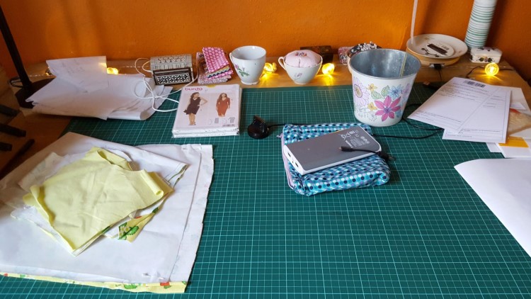 Foto’s dateren van vrijdag, omdat het weekend wat voller zit dan anders en ik wellicht niet ga naaien. En er toch nog één en ander op mijn naaitafel lag.