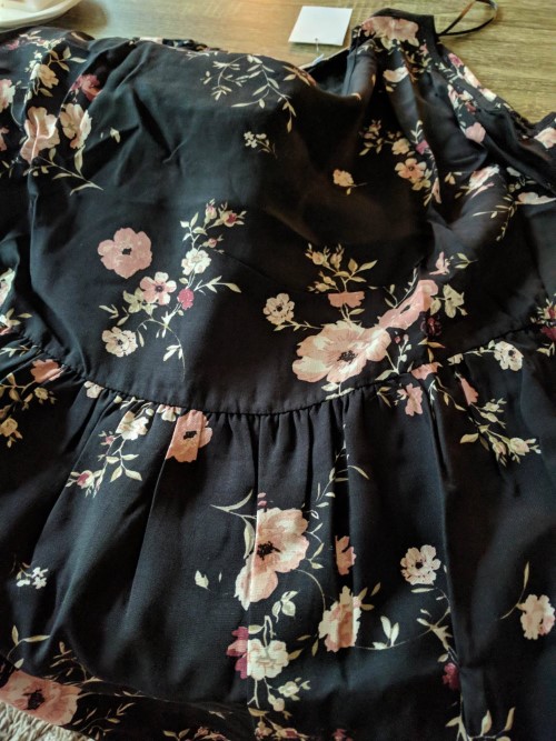 De biaisband bleek net een centimeter of 5 te kort te zijn, maar in mijn voorraad had ik nog zwarte enkelvoudige biaisband zitten om de armsgaten af te werken.
