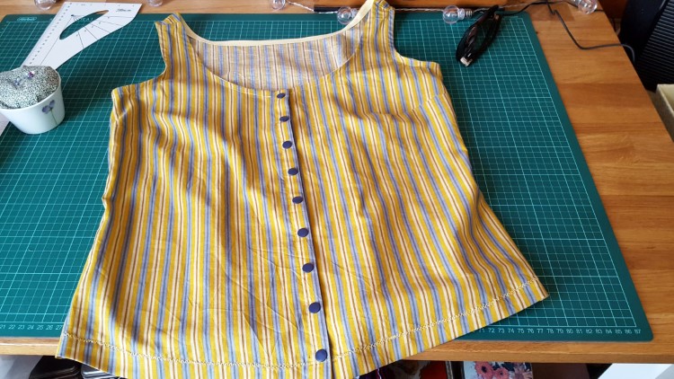 In het achterpand zitten coupenaden, waardoor het topje wat aansluit (en mij toch weer wat taille geeft, iets wat ik dacht dat verdwenen was bij mij) en toch comfortabel zit.