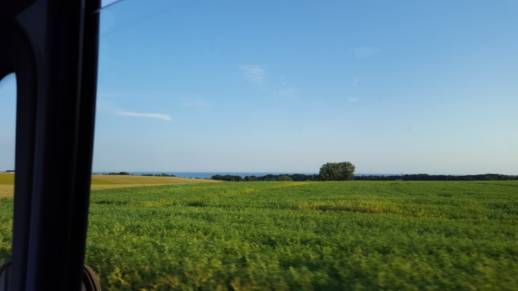 We rijden minder via de kust dan ik dacht, maar zien af en toe in de verte toch een blauwe glimp.