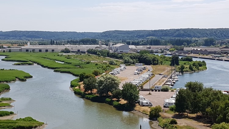 Je ziet trouwens ook de grote Pont de Normandie liggen, die zich vlakbij Honfleur bevindt. Ook vanop de camperplaats kunnen we deze machtige brug zien.