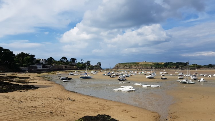 In de late namiddag gaan we eens kijken in de Havre de Rothéneuf, en worden van onze sokken geblazen. Het is eb, de scheepjes liggen te wachten op water, er is weinig volk, het is er gewoon impressionant mooi. Wat een mooie plaats is dit! En wat zijn we blij dat we op deze camperplaats zijn komen staan, zodat we deze speciale plek gezien hebben!