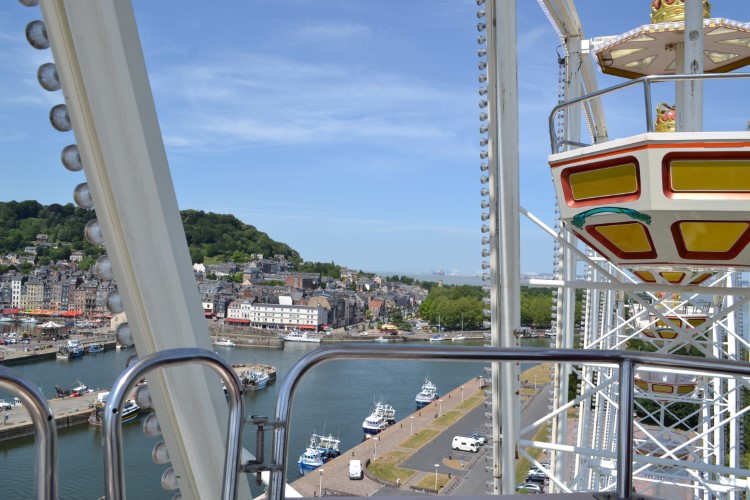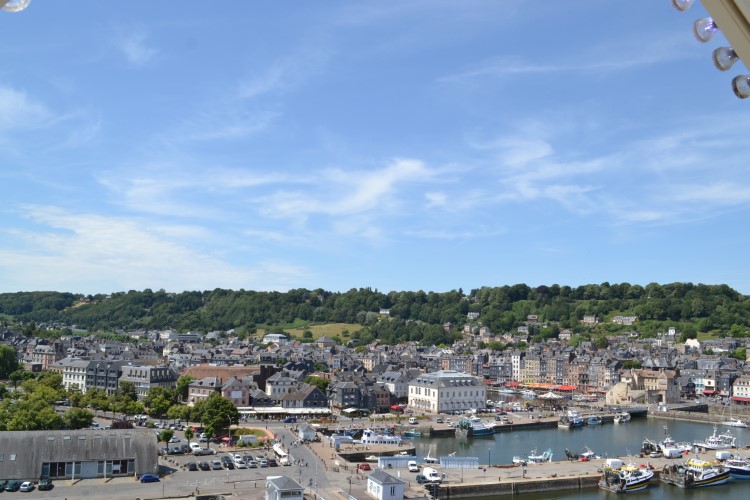 Dus blijven we. Want ik wil graag Honfleur eens verkennen. Wat we na een boterhammetje ook doen, en we genieten. We gaan eens op het grote rad, van waaruit je ook de camperplaats kan zien.