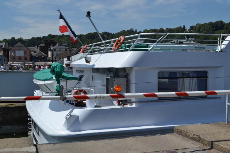 Ondertussen vaart er nog een cruiseboot uit, een behoorlijk groot schip dat door een nauwe sas moet. Leuk om zien.