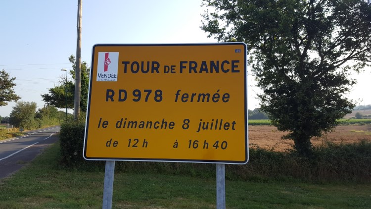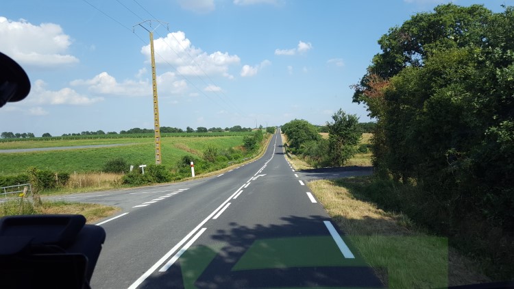 We ruimen ons boeltje op (we beginnen daar steeds beter in te worden en het gaat steeds sneller), en we vertrekken langs golvende wegen richting Cholet voor de tijdrit van morgen.