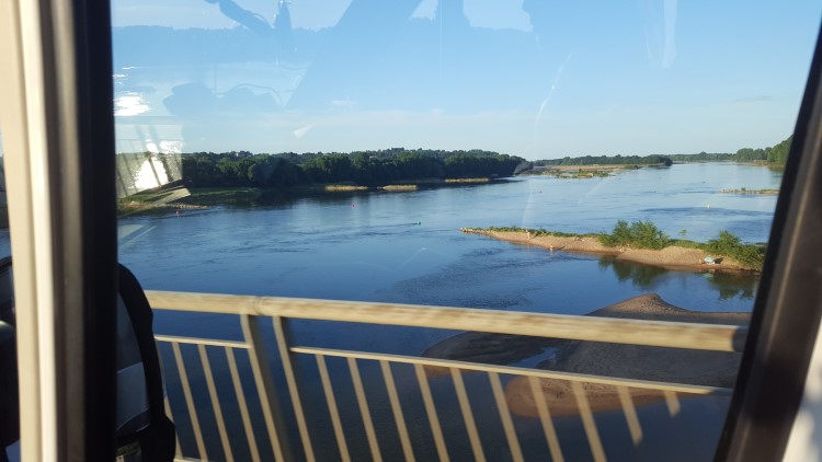 Ik pendel tussen de kant van de weg en de mobilhome (TV) en het fototoestel. Het is heet, de zon brandt. Ik ben blij dat we factor 50 zonnemelk gekocht hebben. Na de koers ruimen we ons boeltje op en vertrekken we naar de voorziene camperplaats in Nozay. Daar aangekomen blijken alle plaatsen met elektra volzet, keren we onze kar en rijden naar Champtoceaux. 35 kilometer rijden, om toch weer een camperplaats te hebben zonder elektriciteit (de gegevens van de Campercontact app in deze omgeving blijken toch niet al te hard te kloppen). Maar: wat is het hier mooi! De berg op, aan een grote plas. Ik vind het fantastisch.