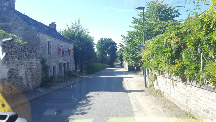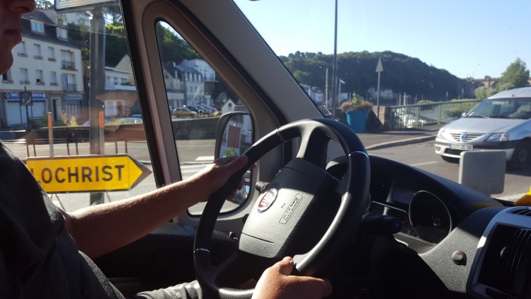We zetten de wekker om 4u30, maar slapen door tot 6u. Koffie, ontbijt, doen nog wat praktische dingen, en we beslissen om toch naar het parcours te trekken. We vertrekken pas rond 9u. Dit was echt een mooie camperplaats, hier wil ik wel eens terugkomen om de omgeving te verkennen, want behalve rond het terrein hebben we niets meer gezien, geen oceaan, geen zicht op Lorient, noppes. Maar goed. We voelen ons behoorlijk thuis in de buurt als we de vele bordjes naar Lochristi zien.