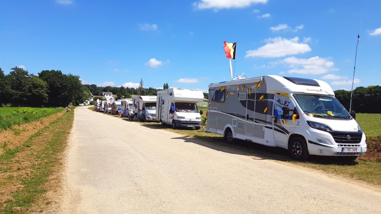 We eten een boterhammetje en zien dan waar de camperplaats wel is, in de camperapp stond een foute straatnaam (rue de la Croix en impasse de la Croix, het is niet hetzelfde). We rijden dan verder naar Saint-Aiglan, waar we het parcours oprijden. We twijfelen bij behoorlijk wat plaatsjes, maar eigenlijk feitelijk wil ik satelliet want de rit van morgen zou ik graag zien, er zijn enorm veel plaatsen met een parkeerverbod (later blijkt waarom), we rijden een heel eind door tot voorbij Rostrenen, en keren dan terug naar een plaats die we eerder zagen, waar al veel campers staan. Alhoewel ik asociaal ben en liever niet heb dat het vol mensen staat rond onze mobilhome, overnacht ik graag tussen de campers, dan voel ik me veilig. Het lijkt ons een plaats te zijn waar nog weinig mensen te voet gaan toestromen, dus we staan wel goed.