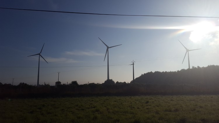 Supergoed geslapen, geen kou gehad. Wat doet dat deugd. Ik merk pas aan de overzeilende schaduwen dat we dicht bij windmolens staan.