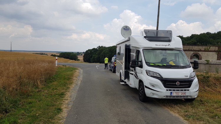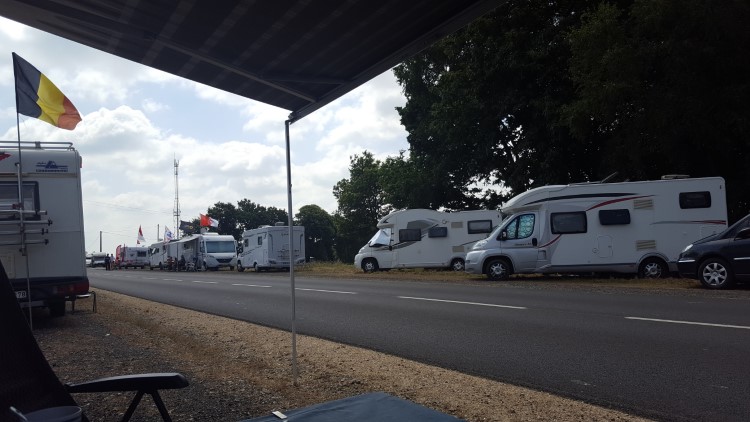 We zitten langs de kant en kijken auto’s. Af en toe een babbeltje met onze Belgische buur. Beetje vreemde mens, maar wat maakt het uit. De karavaan laten we rustig passeren. Wat rijden ze weer snel. Zoals verwacht is er weinig volk bijgekomen en blijft alles rustig.