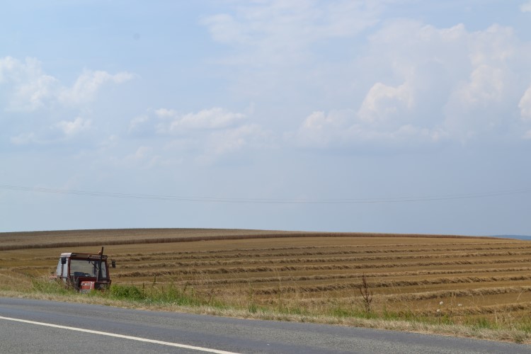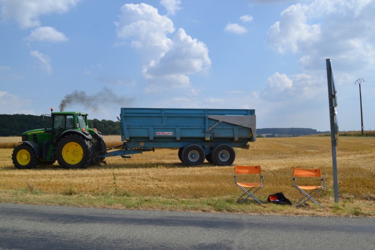 In de omgeving van Saint-Georges-Buttavent willen we eerst boodschappen doen. We zoeken een U en vinden die in Mayenne (een Hyper U). Die gaat om 8u30 open. We staan een beetje voor 8 ter plaatse, wachten op het openingsuur en doen onze boodschappen. In het gedacht dat we daarna nog op tijd op het parcours zouden geraken om een plaatsje te zoeken, maar dat was een beetje fout gerekend. Of we hebben onze boodschappen te traag gedaan, dat kan ook. In ieder geval: het parcours sluit om 9u30 en we zijn er om 9u35. En de agent wil ons niet meer doorlaten. Merde. In Mayenne stuiten we iedere keer weer op die gesloten weg, en we besluiten een eind verder op het parcours te rijden, waar het later sluit en we er toch nog op kunnen. We rijden richting Alençon op de grote weg, en ondertussen zoek ik waar we naartoe zouden kunnen rijden. Mijn vinger belandt op Bellême (later op de dag zit ik met Belle Hélène van Doe Maar in mijn hoofd, fuck die associaties jong), ik zoek uit hoe we er kunnen geraken, en we rijden er vlot naartoe. En: het parcours is nog open. Hoera! Dus zoeken we een plaatsje, wat ook al niet vlot verloopt. Naast de weg zijn vaak schuin aflopende grachten, waar een gewone auto wel op kan gaan staan, maar een mobilhome niet, die zou omvallen. We rijden en rijden en rijden, zien af en toe wel eens iets maar ja, het heeft altijd wel wat tegen. Op een aflopende weg (gaan ze ons weer voorbijvlammen), in een dorp (te druk), aan een kruispunt (te druk) enzovoort.