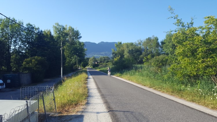 We staan vroeg op want vandaag willen we onze geplande fietsrit rond het meer doen. Goed te doen qua afstand: 37km. We vertrekken al om 6u om de hitte voor te zijn: het is niks voor ons om in de blakende middagzon te fietsen. Het is nog heel stil op de Voie Verte, maar alleen zijn we zeker niet.