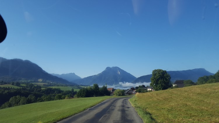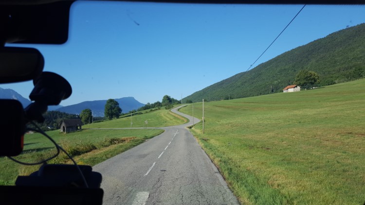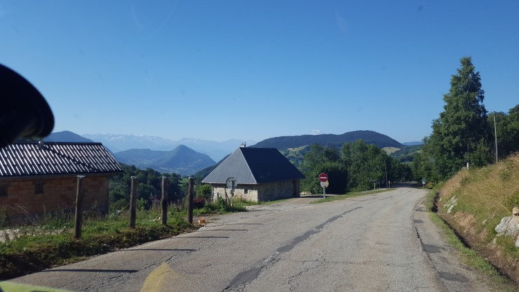 We rijden langs de grote weg naar Sévrier en ik denk dat we nog een tijdje op de D1508 (een heel drukke weg) zullen blijven, maar mis poes, in Sévrier gaat het meteen de berg op via een kleinere weg. 13% stijgingsgraad. Oeps. Het is even slikken en even wennen, maar dan zijn we vertrokken en vinden we het fantastisch: wat zien we weer godsonmogelijk mooie landschappen. We genieten van de col, van de weidse uitzichten boven, van de dorpjes en de rust. Dé verzuchting van onze reis is: woont hier zeg! We komen veel plaatsen tegen waar we ons wel zien te wonen! Ik kan het weer niet laten tienduust foto’s te maken, waarvan de meesten op niets trekken.