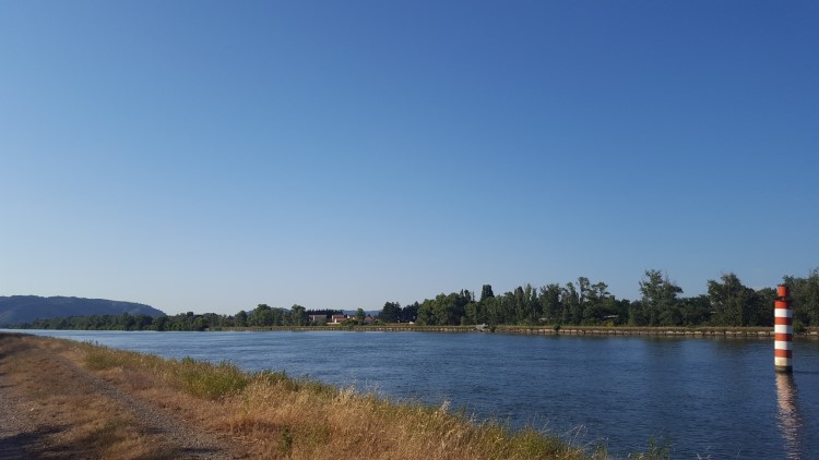 We hebben besloten dat we de geplande camperplaats links laten liggen, en dat we 40 km verder gaan rijden naar een camperplaats van Camping Car pak in La Roche de Glun. De rit voert ons via de Isère naar de Rhone, het laatste stuk zitten we tussen de 2 rivieren in.