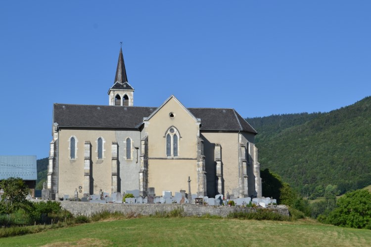 We stoppen in Le Noyer, een onooglijk dorpje met een kerk die ligt te blinken in de zon. We eten een couque au raisins, drinken koffie, genieten van het landschap en de staalblauwe lucht, zien de echte alpen in de verte, en rijden weer verder.