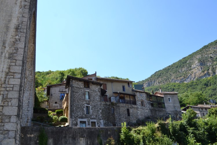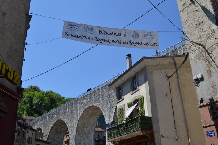 We rijden op het gemak naar Saint-Nazaire-en-Royans, zoeken daar een parking en gaan het stadje verkennen. We vergapen ons aan de brug, lopen wat rond, lunchen met een tartine chaude van een vreemde en norse ober, en trekken dan verder. We maakten foto’s, veel foto’s.