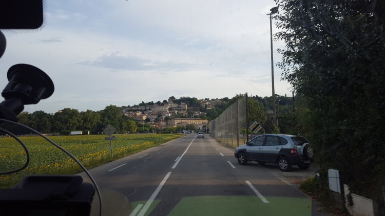 Na een lange, lange rit komen we aan in La Cavalerie (surprise: langs een kilometerslang militair domein, de helft van het dorp bestaat uit militaire gebouwen). Na een beetje zoeken vinden we de camperplaats: een veredelde parkeerplaats, maar het kan ons niet verdommen: het is al 22u, en morgenvroeg zijn we weer weg. Lozen, een boterham eten en slapen. We zetten de wekker een uur later dan normaal.