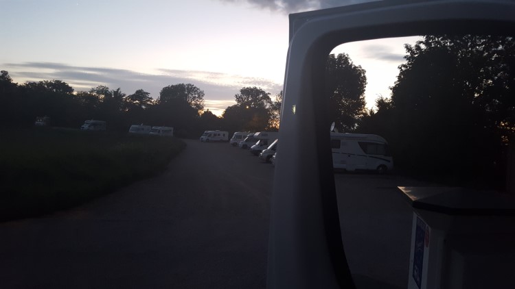 Waarna we in de camper spek met eitjes bakken en overschot pizza eten. Het regent en onweert de hele avond.