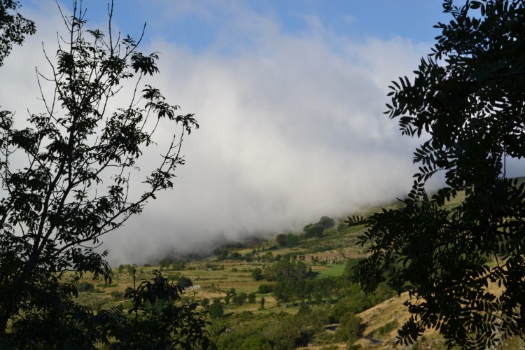 We rijden naar rechts en meteen na het dorp dient zich een klim aan. En daar vinden we een heel mooi plaatsje. We zetten op het gemakje ons boeltje op, ik kook en we laten het ons smaken. We potteren wat rond en genieten van de rust. Eerst staan we nog in de mist, maar na een tijdje klaart het uit en wordt het toch warm.