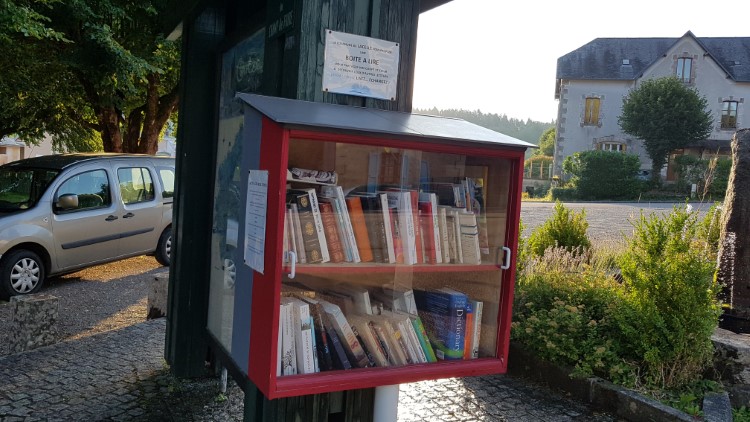 We houden een eerste tussenstop in Lacelle, een gezellig ouderwets dorpje (of een ouderwets gezellig dorpje?), waar tot onze verbazing de leeskast geïntroduceerd is.