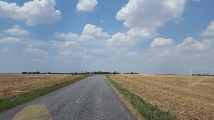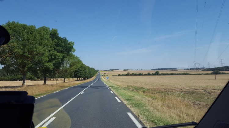 We drinken er een kop koffie en trekken dan weer verder. We rijden weer door de graanschuur van Frankrijk, de velden zijn grotendeels geoogst.