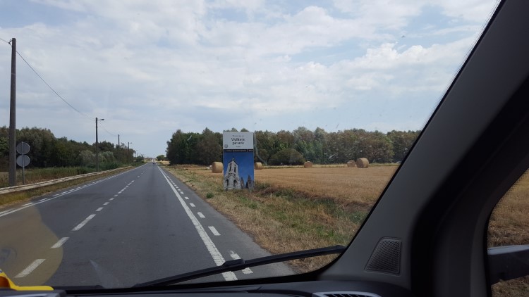 De schuren zijn gigantisch, en lijken soms de kerken van de streek. Stofwolken verraden waar boeren aan het werk zijn. Het is droog, heel droog. De volgende stop is op een parking aan een vijver, we eten er wat en rijden dan weer verder. We rijden door de Somme-vallei en zien veel oorlogsaandenkens.