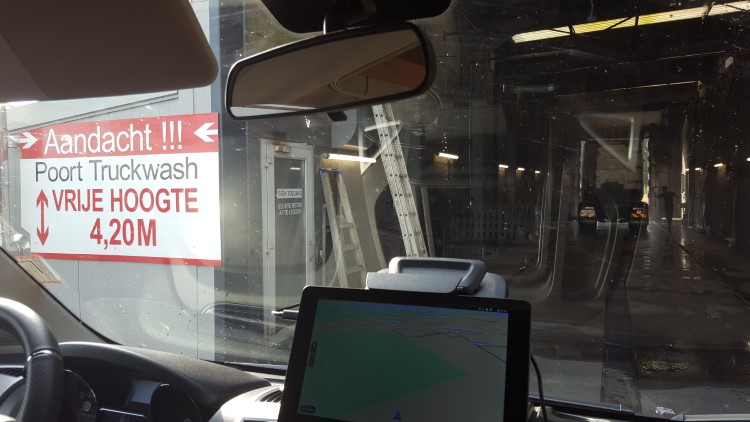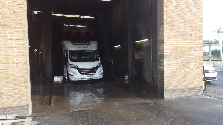We poetsen de binnenkant van de camper, en gaan daarna voor een wasbeurt naar Vroman Truckwash in Maldegem. Zo hebben we dat ook eens meegemaakt.