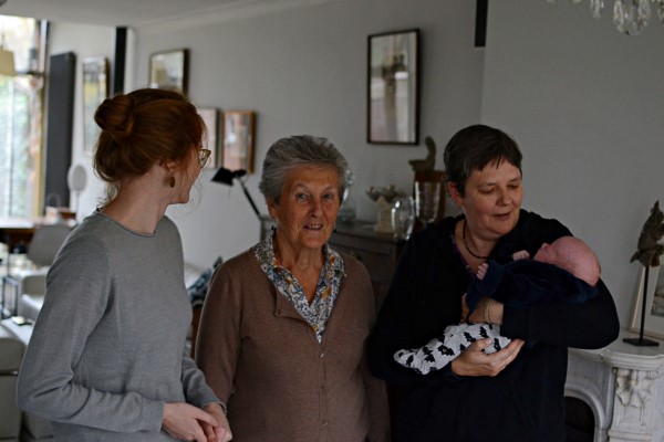 Er waren 3 zussen, elke zus heeft een dochter, en die dochter heeft minstens één dochter. Ik had ook een theorie dat we allemaal hetzelfde deden (behalve de uitzondering die de regel bevestigt): we hebben allemaal eerst een dochter, en dan een zoon. Maar mijn dochter heeft die theorie (de uitzondering die de regel bevestigt was nog verdedigbaar) aan diggelen geslagen met haar twee dochters 🙂 (waar ik overigens erg blij mee ben hoor, dochters rule).