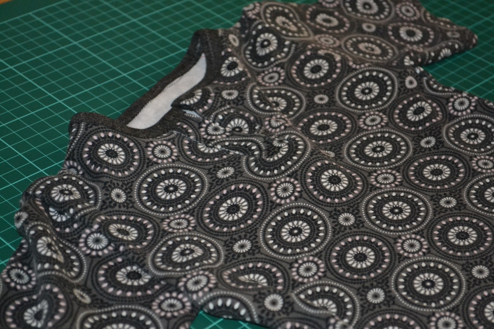 Ik gebruikte opnieuw het patroontje van Nap Time Creations, en probeerde voor mijn eigen gemak zoveel mogelijk te recycleren. Zo werden de zoom, een deel van de sluiting en de zomen van de mouwen opnieuw gebruikt. Wat ervoor zorgde dat het shirtje in no time gemaakt was, want dat scheelt toch een pak tijd die anders in de afwerking kruipt.