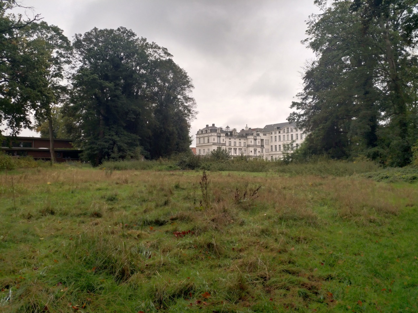 De achterkant van een mooi gebouw. Ik heb eens op google maps gekeken van wie of wat het is, maar ik kan niet met 100% zeggen of het van een school of dergelijke is.