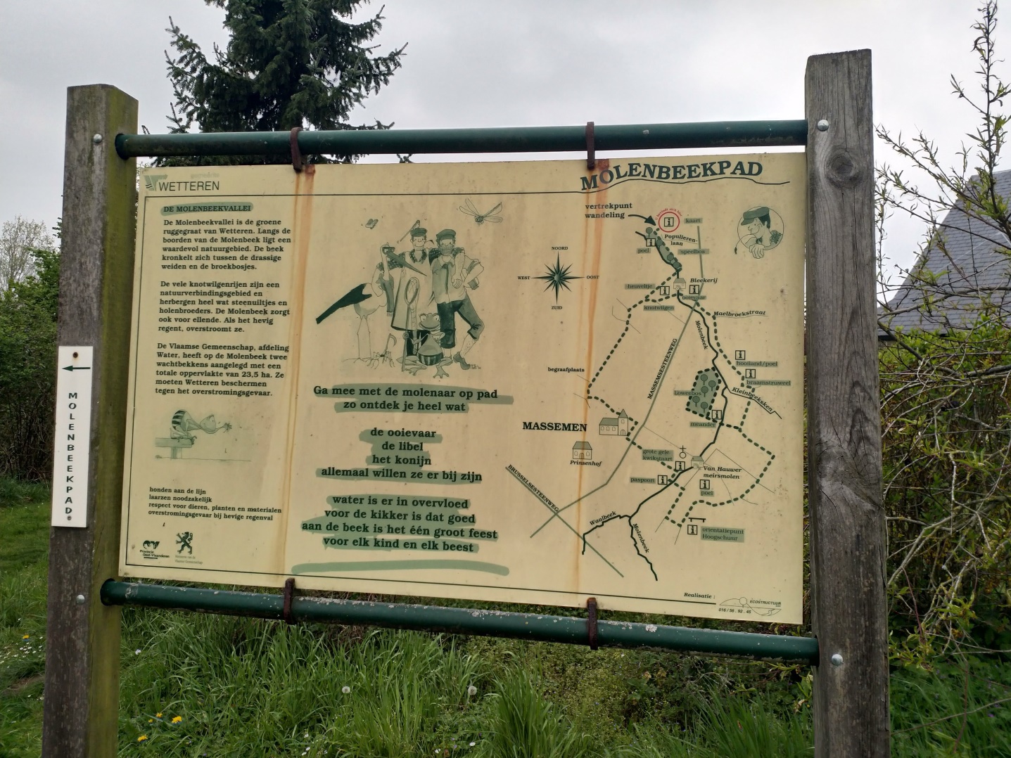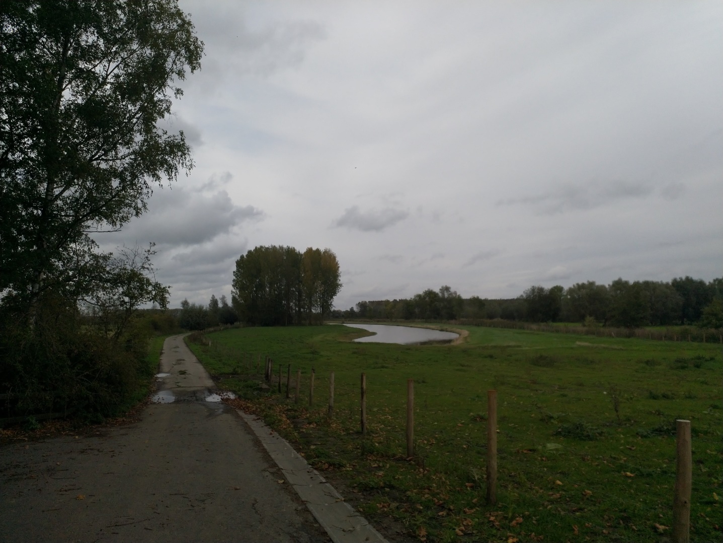 Zo kwam ik uit op het Molenbeekpad. Ik vroeg aan Milan of hij zin had om eens tot daar te gaan. Het lag goed verborgen, de eerste keer zijn we de ingang gewoon voorbij gewandeld. Maar eens we het gevonden hadden: zo mooi! Zo rustig! Al die velden! Het was er muisstil, buiten de kikkers in de vijver. De volledige route is 9,6km lang. Misschien iets waarnaar ik kan opbouwen.