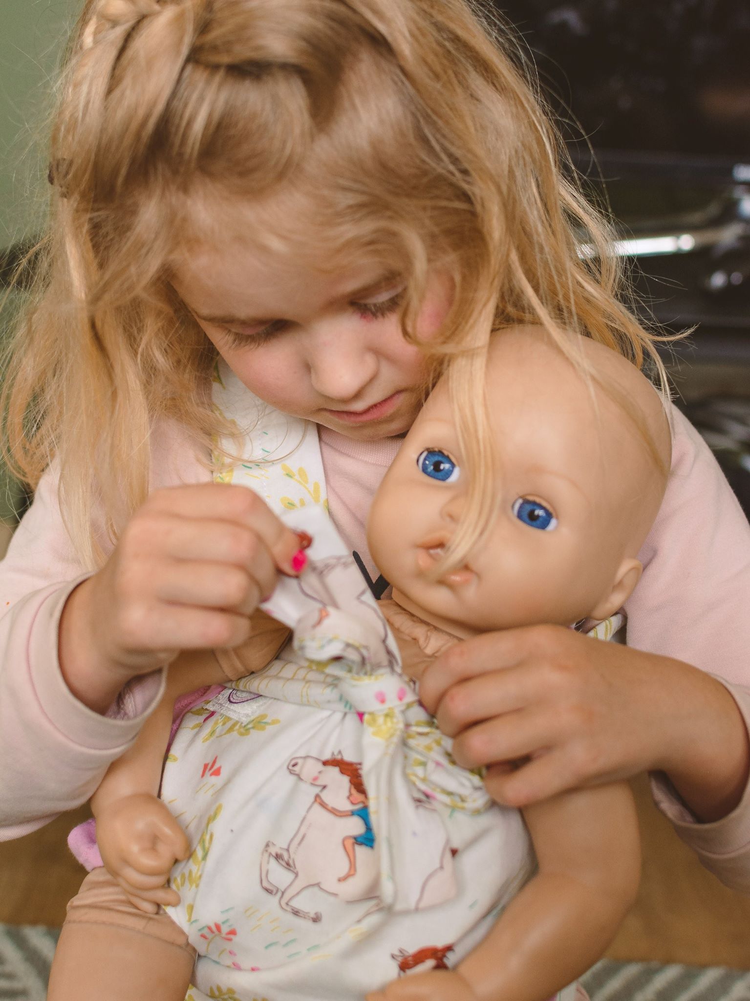 Oh hoe mooi en teder. Een knappe poppenmoeder!