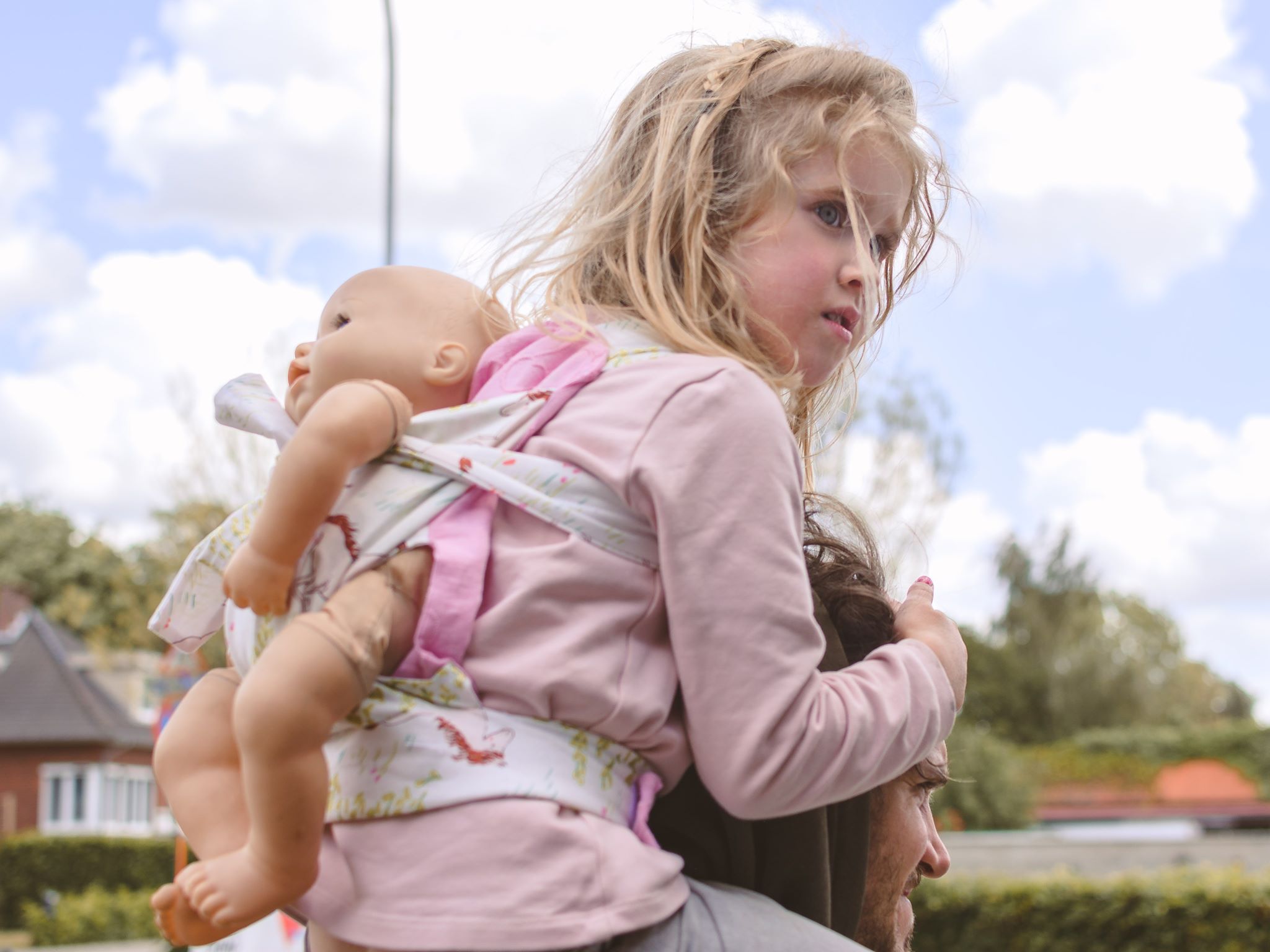 Of toch niet helemaal? Want ondertussen kreeg ik al foto’s van de kleine poppenmama die op stap gaat…