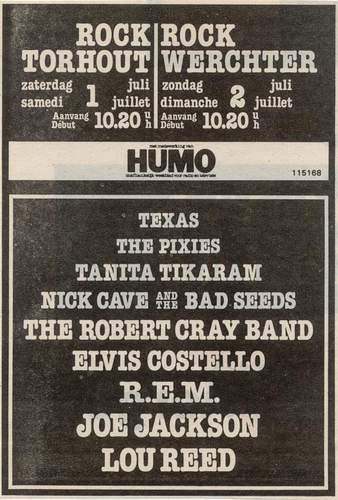 Highlights: The Pixies, Nick Cave, Elvis Costello, R.E.M.. Low points: Tanita Tikaram, the weather.